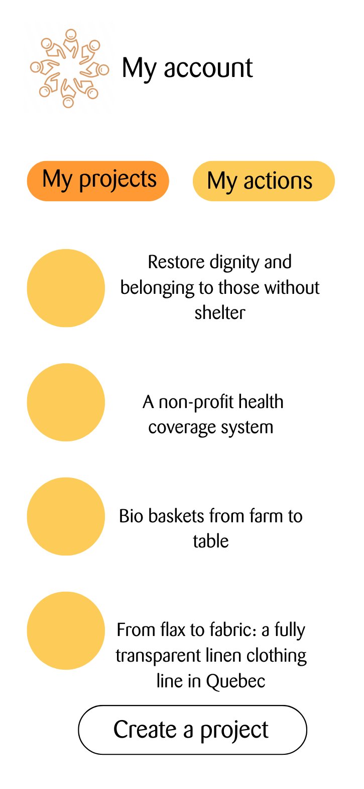 Browse existing projects and explore their actions — whether it’s offering a meal, sharing your time, or helping with logistics.