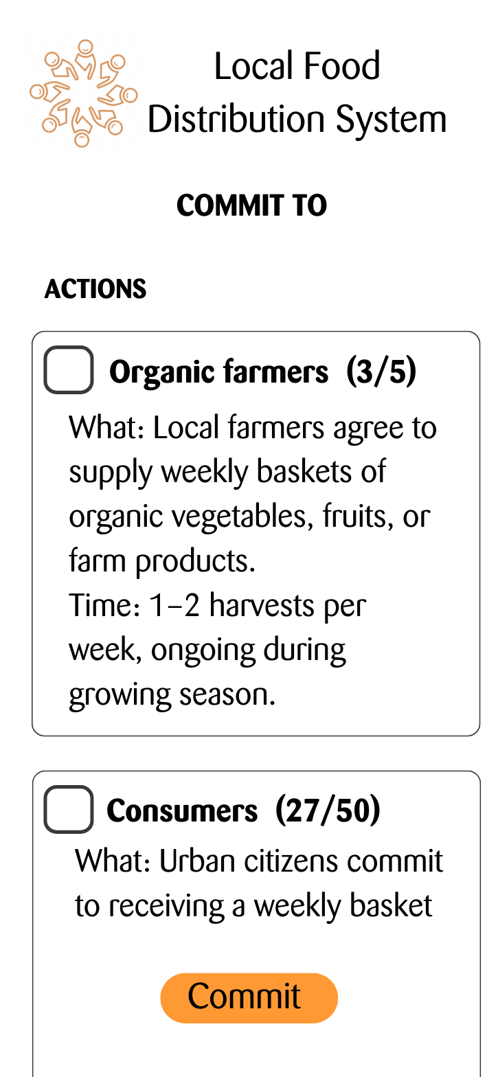 Once saved, your actions become the core tasks of your collective project — visible, shareable, and ready for others to commit to.